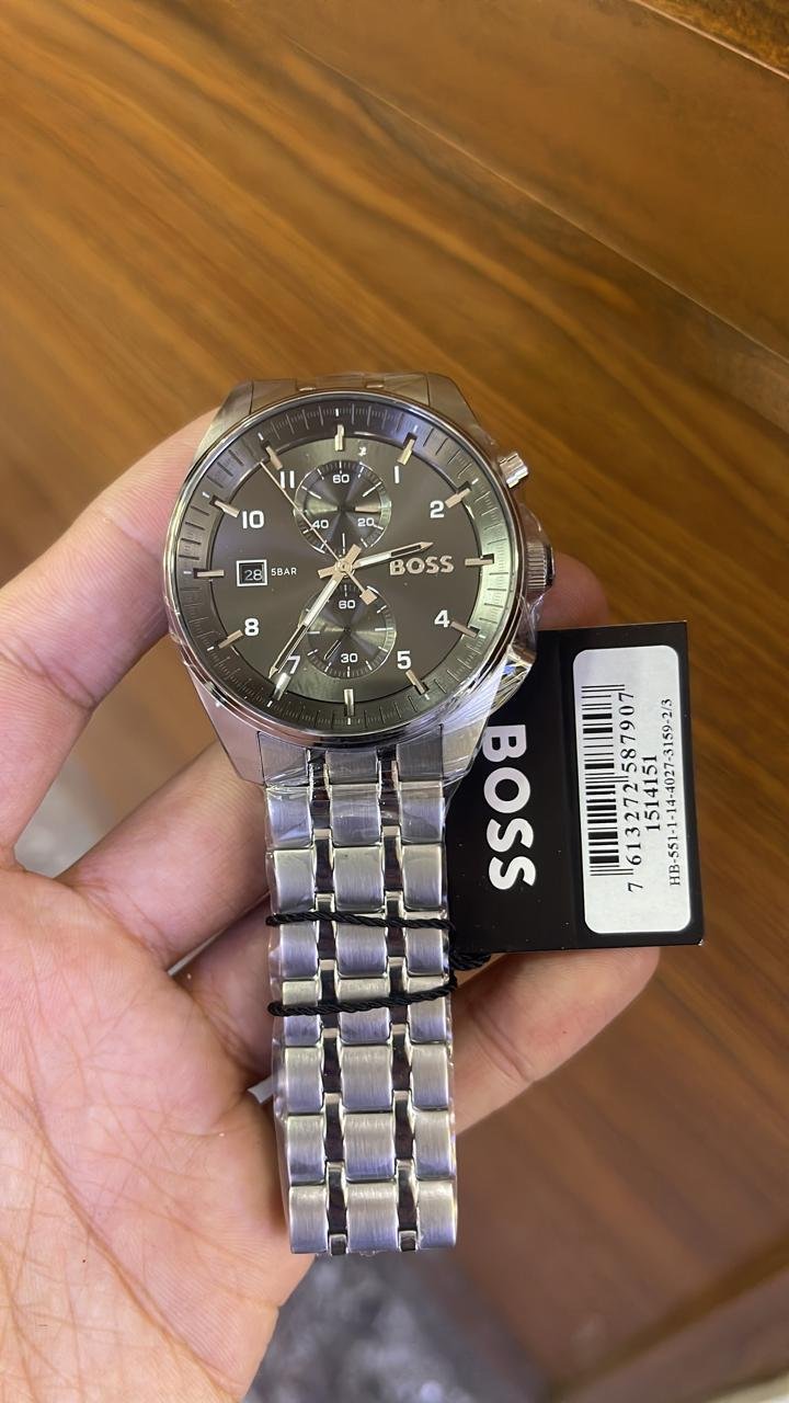 Dotée d’un cadran noir intense, de trois sous-compteurs et d’un boîtier argenté de 44 mm, cette montre incarne la précision et l’élégance masculine contemporaine. Le style Boss, affirmé jusqu’au moindre détail.