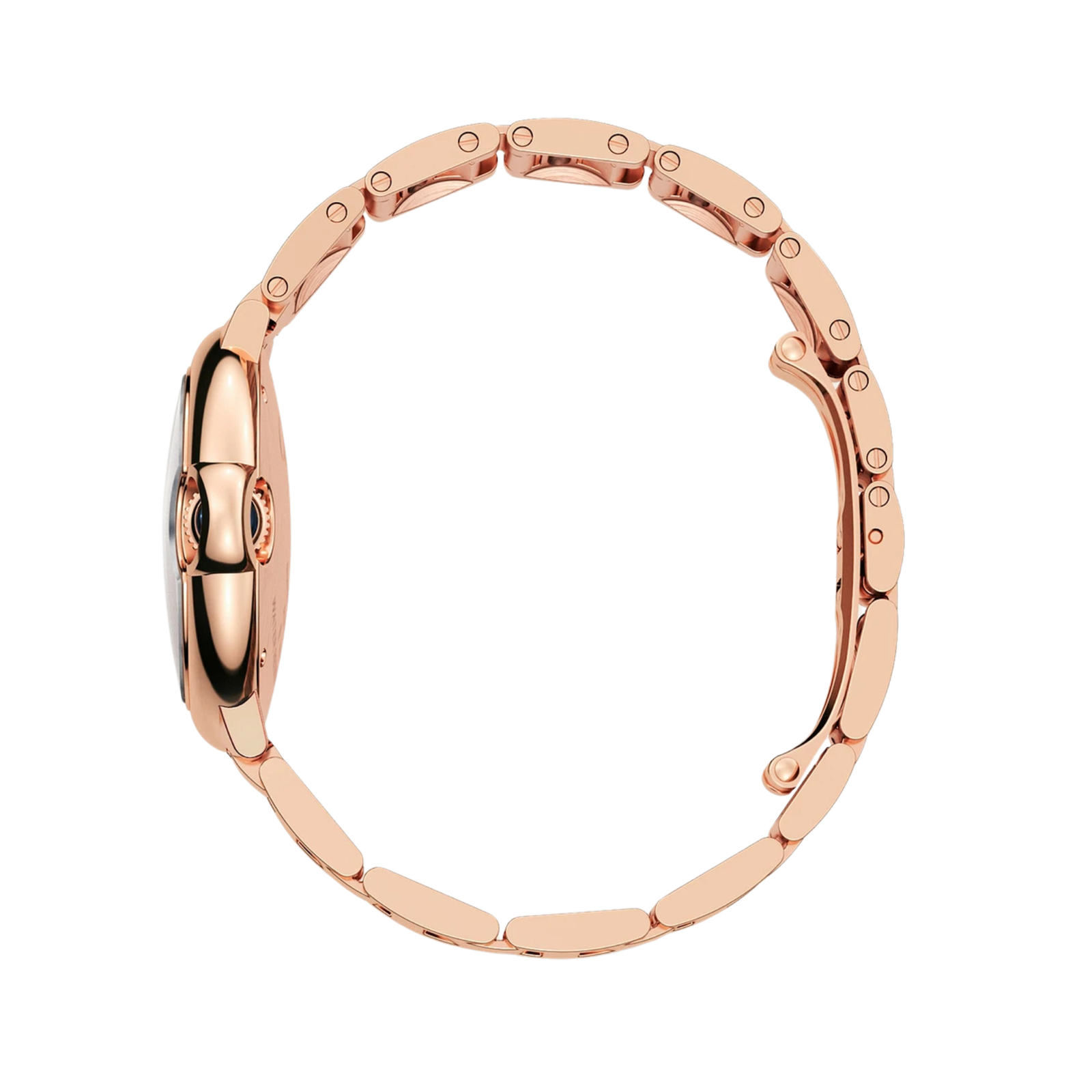 Boîtier rond de 33 mm en acier inoxydable finition bronze rosé, conçu pour épouser parfaitement les poignets féminins.