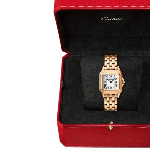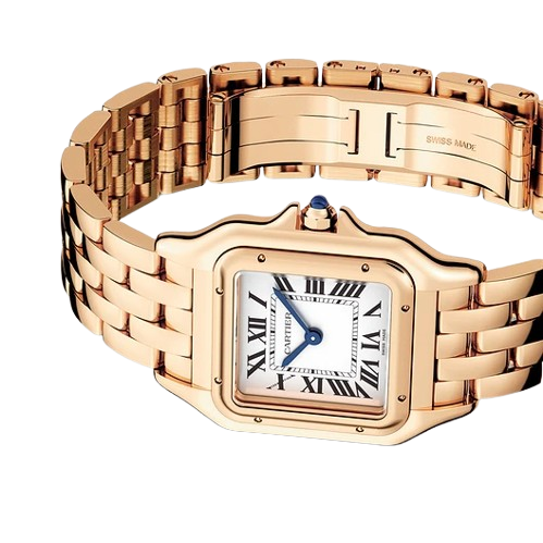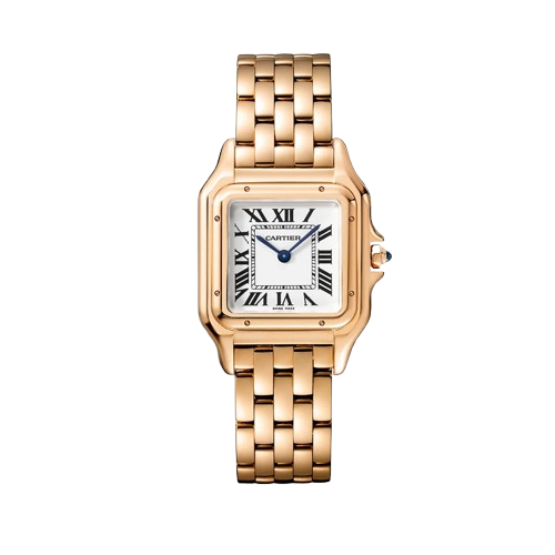 Boîtier carré de 27 mm en acier inoxydable poli : une silhouette raffinée et féminine, au charme discret.
