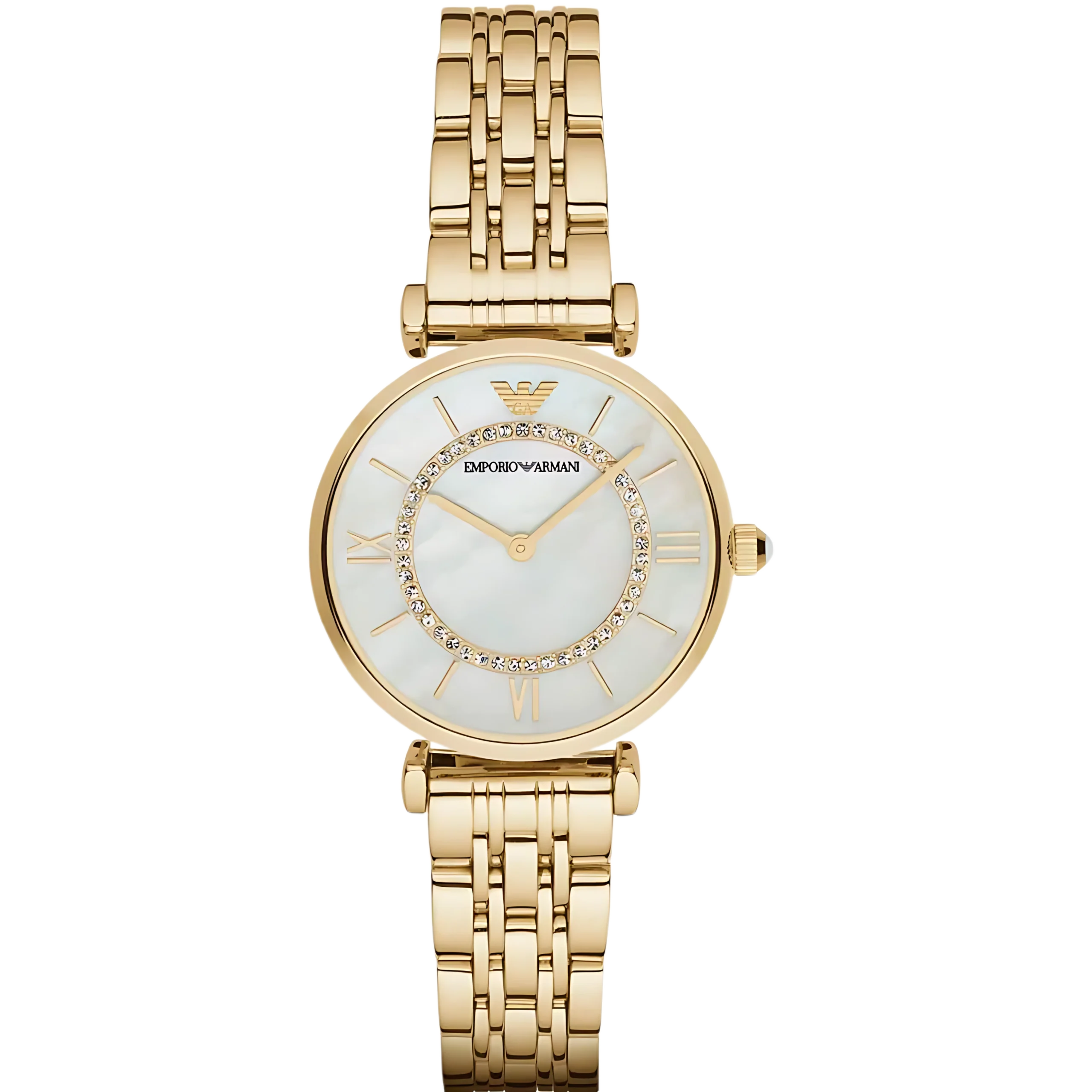 Cadran nacré avec index dorés et chiffres romains : lecture claire et charme classique.