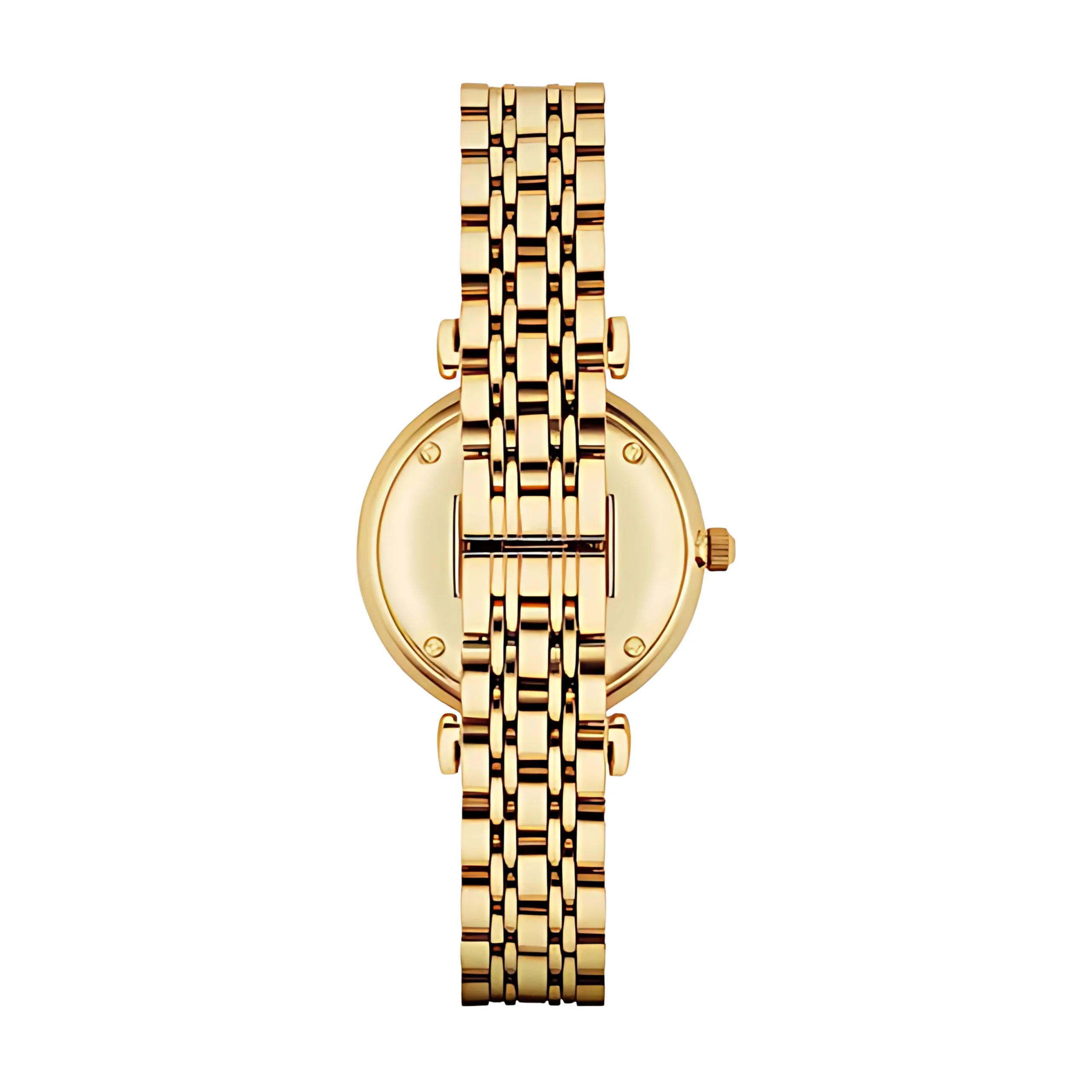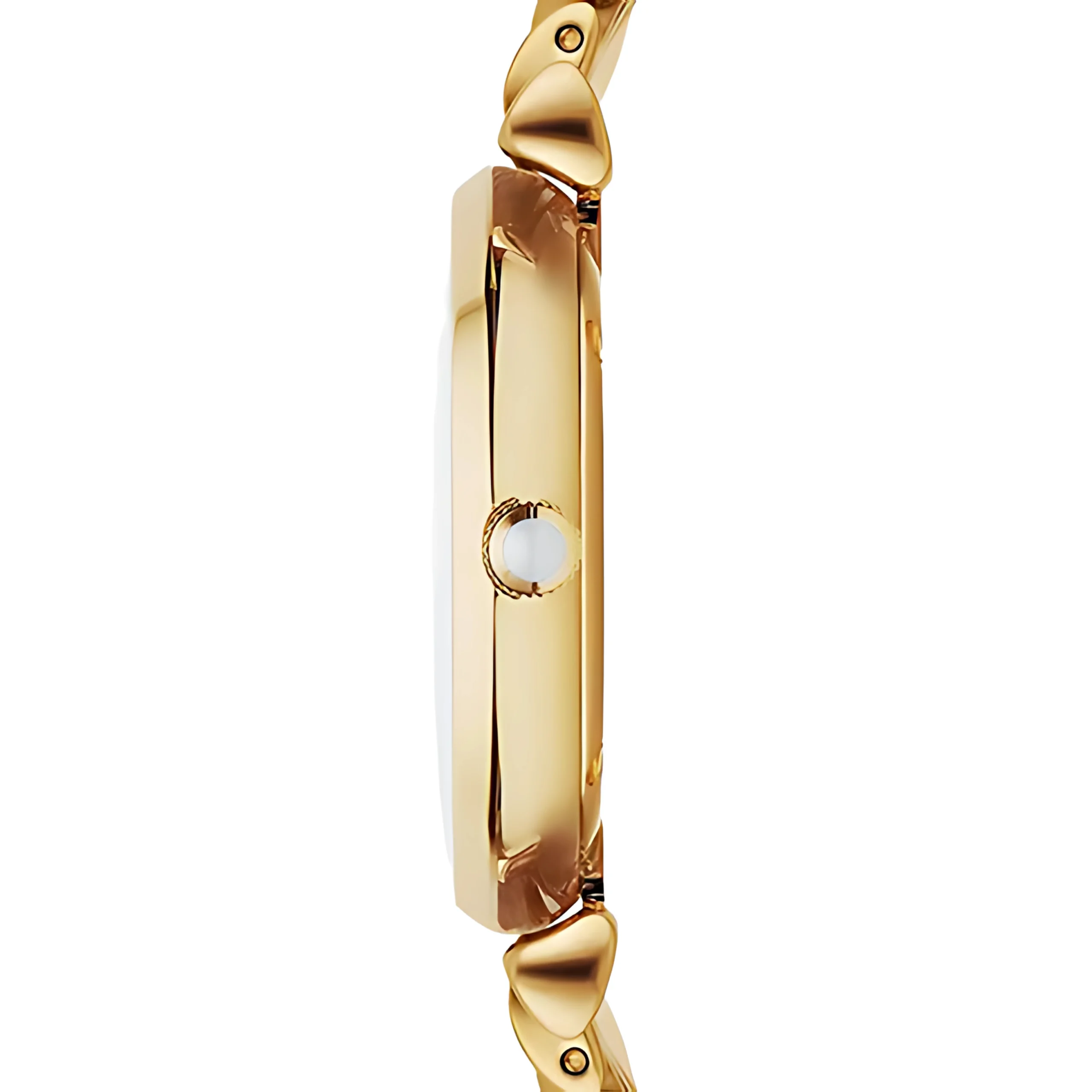 Boîtier rond de 32 mm en acier inoxydable doré, silhouette fine et élégante.