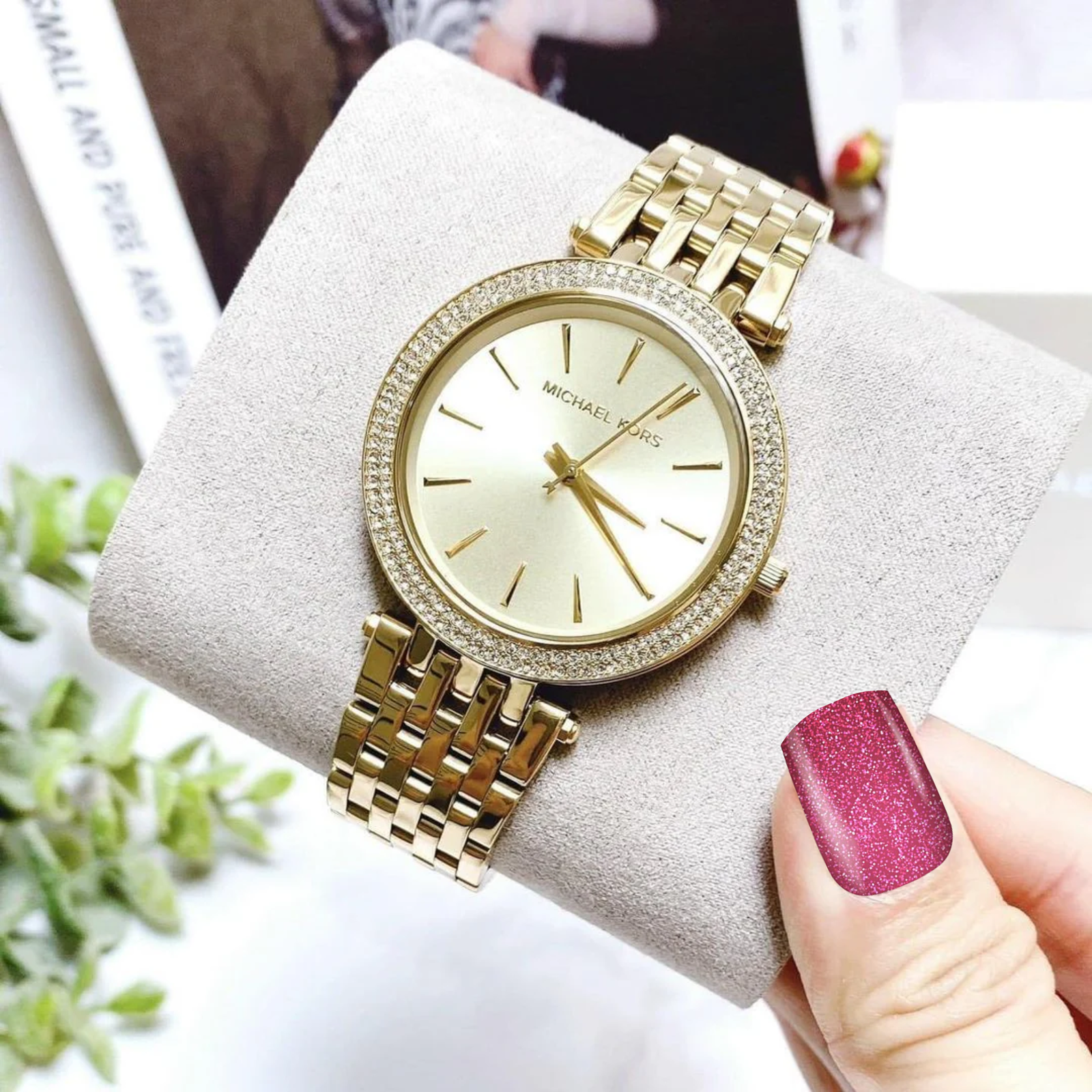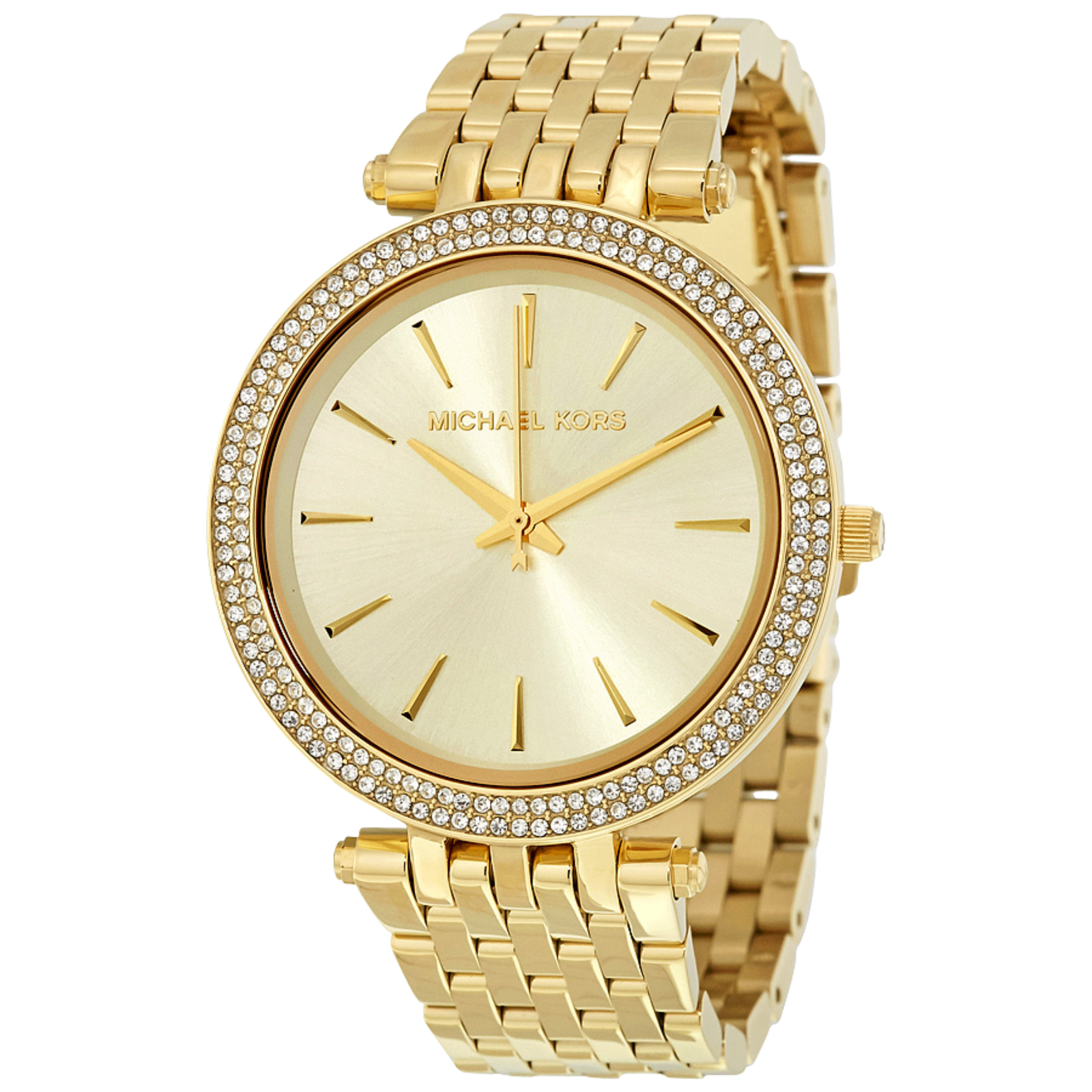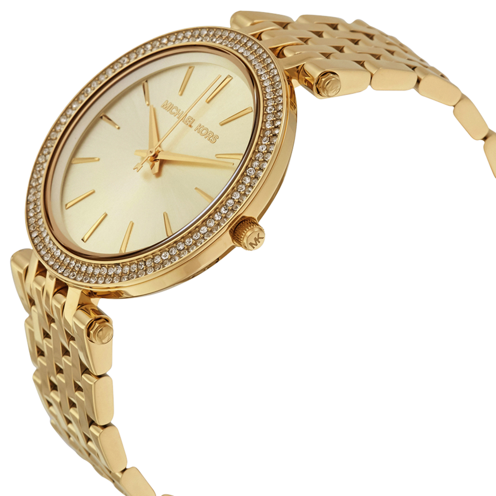 Cadran doré texturé, avec index fins assortis pour une harmonie visuelle élégante.
