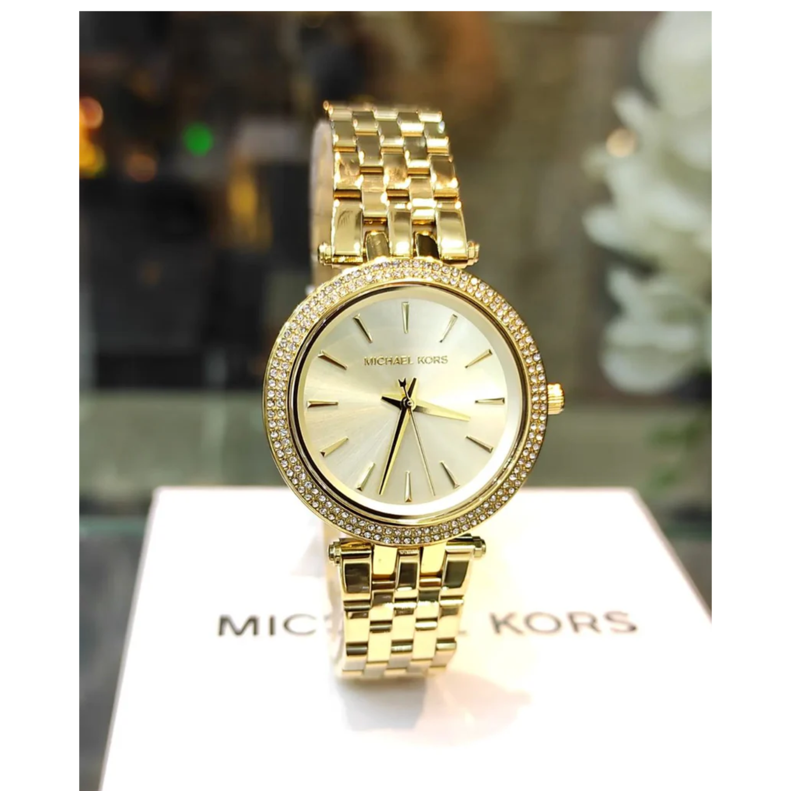 Lunette sertie de strass brillants, pour une touche lumineuse sans exagération.