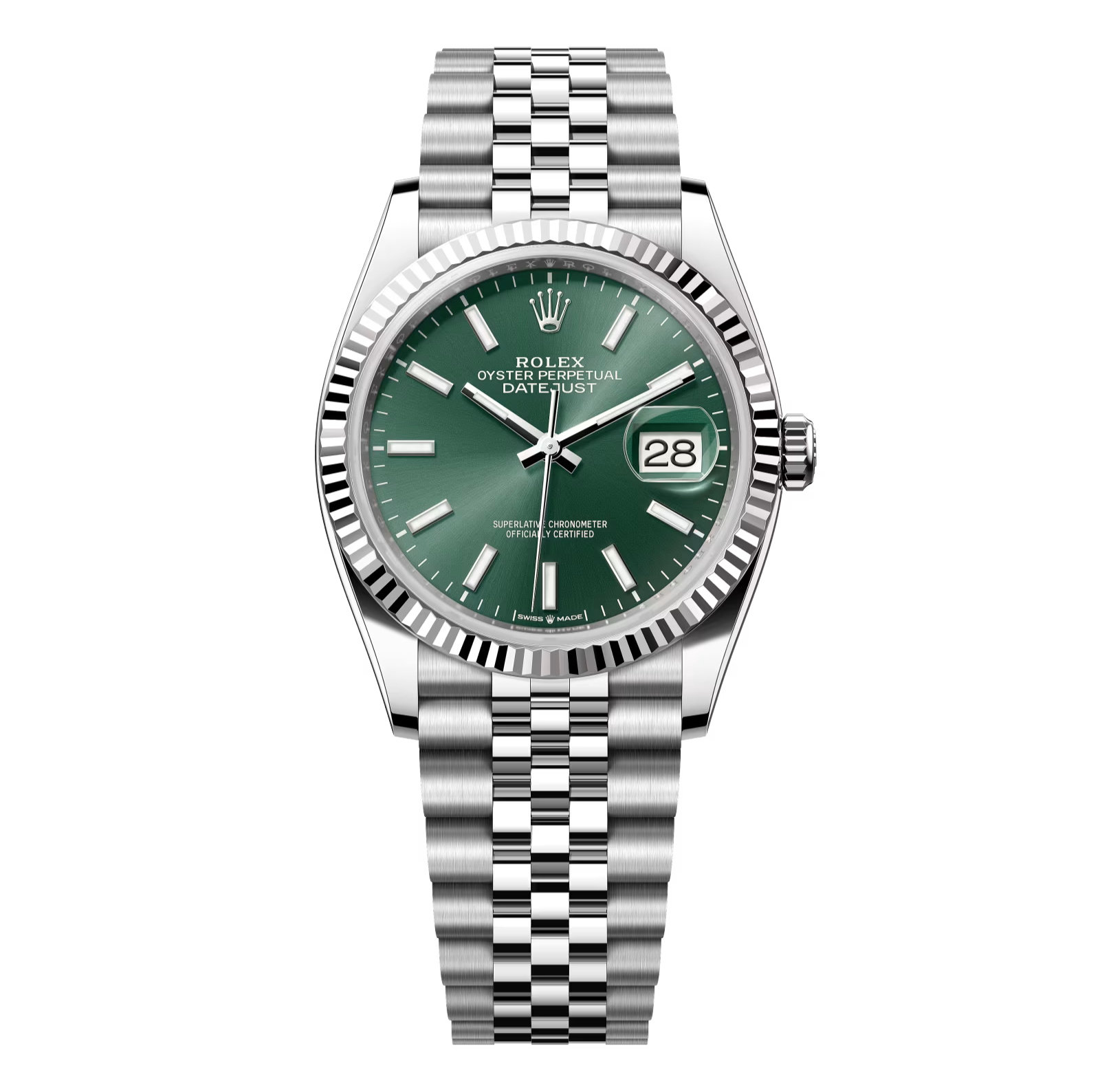 Un boîtier élégant de 36 mm, un cadran vert profond aux reflets menthe, et un bracelet cinq maillons iconique. Une montre qui impose sa présence avec discrétion et raffinement.