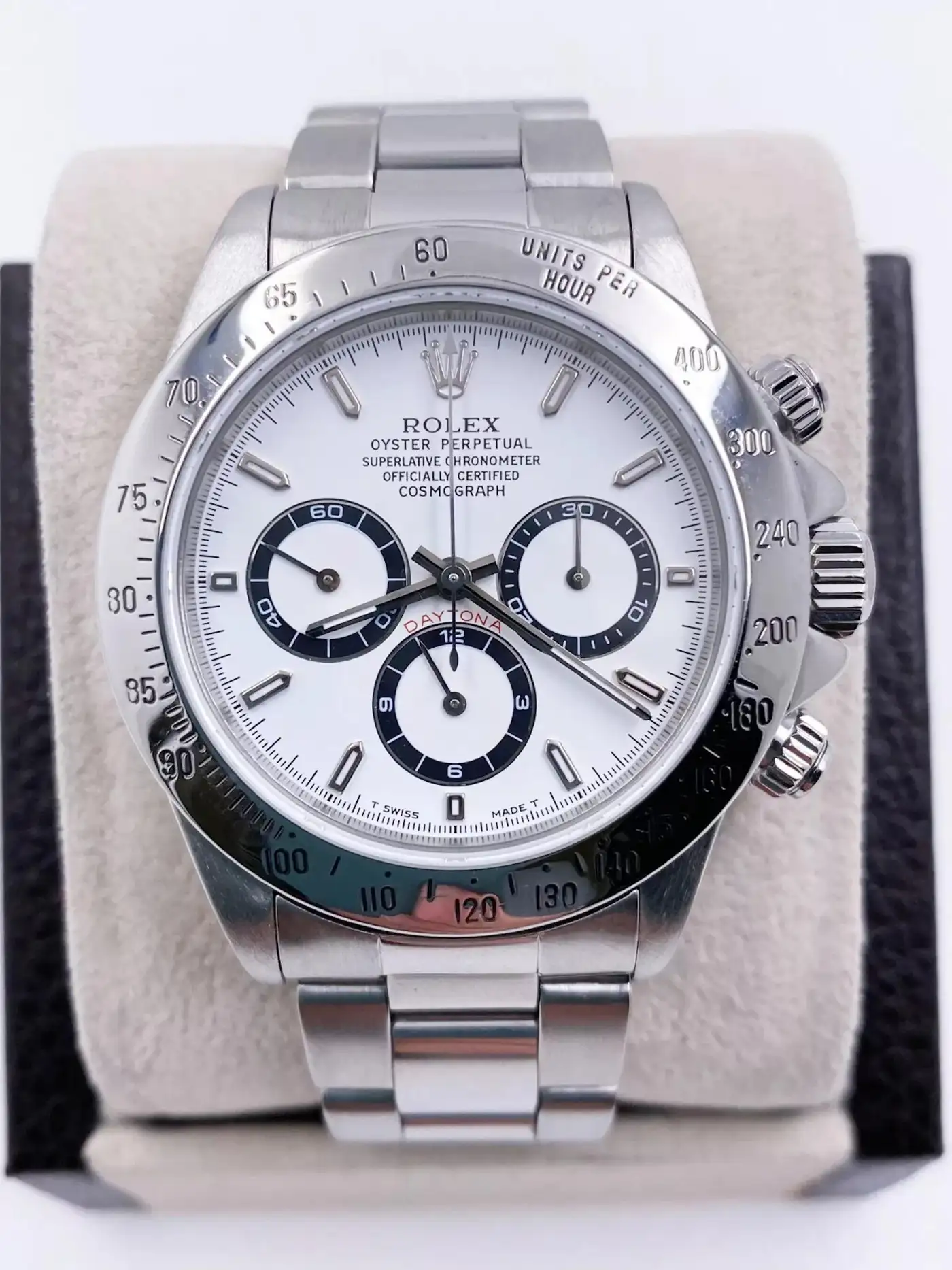 Cadran blanc « Panda », avec trois compteurs noirs intégrés : petite seconde, minute, et heure du chrono