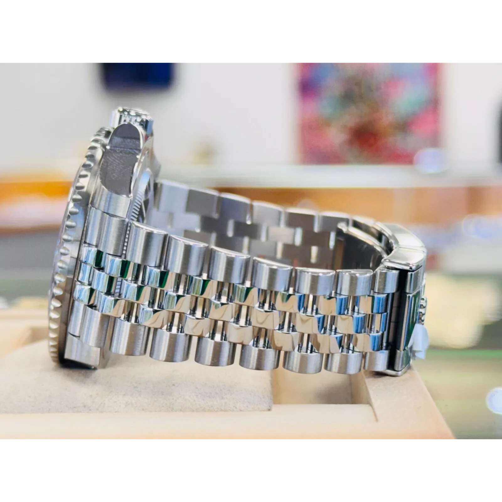 Boîtier 40 mm en acier inoxydable, finition brossée et polie.
