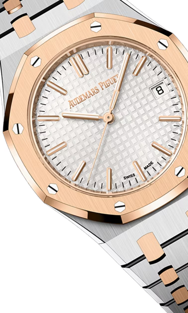 Boîtier rond 34 mm en acier inoxydable, lunette octogonale en finition or rose