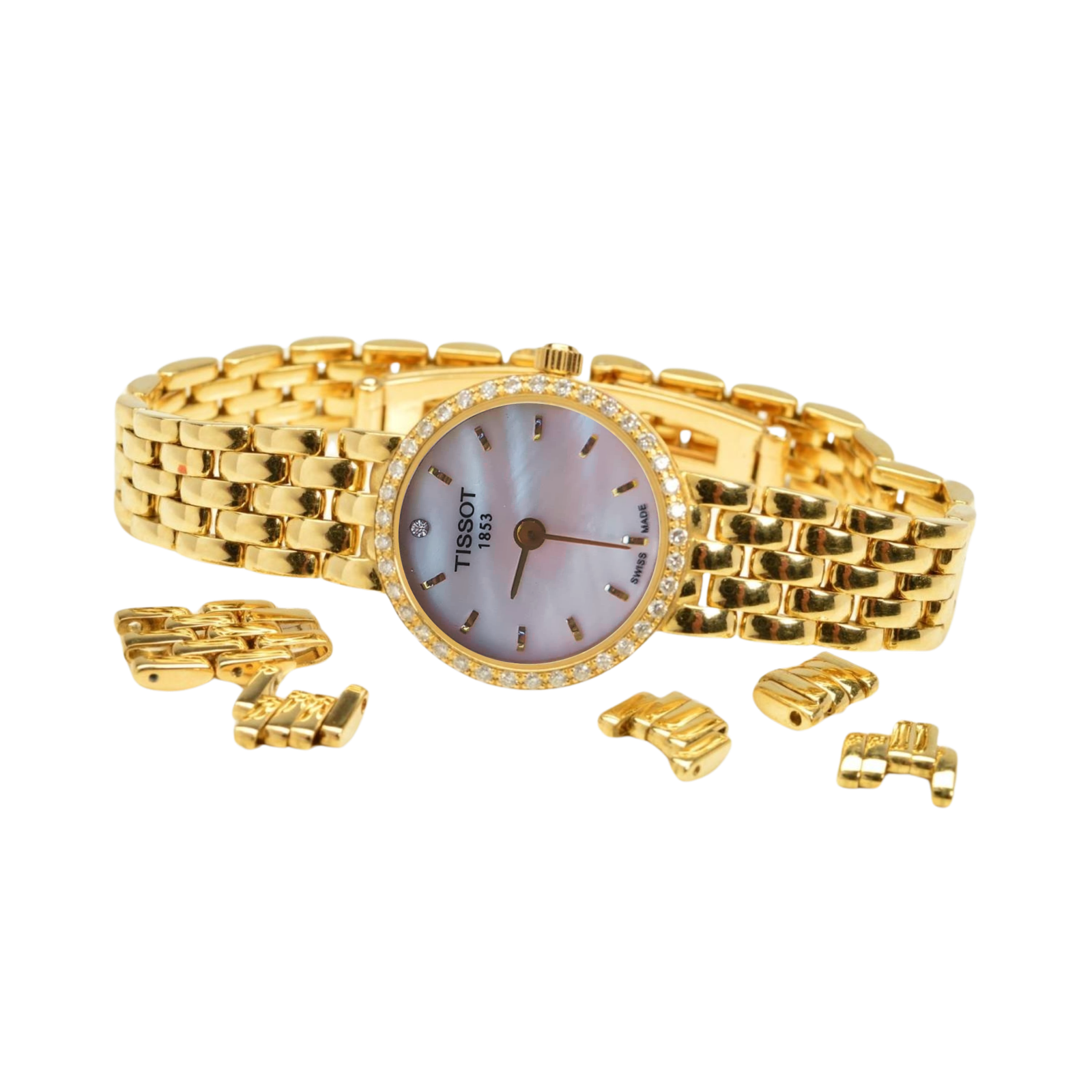 Cadran blanc perlé avec index dorés minimalistes, pour une lecture raffinée.