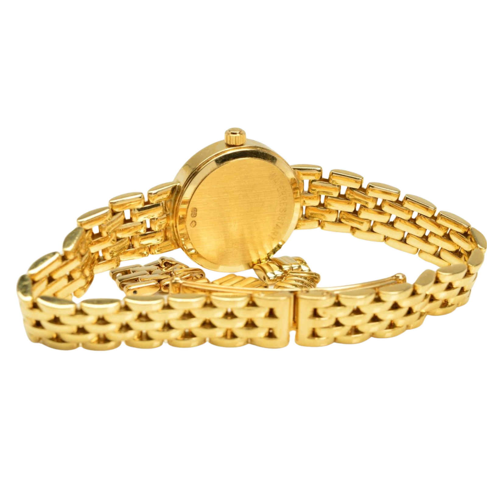 Boîtier ultra-compact de 19,5 mm en acier inoxydable doré 316L, à la silhouette élégante et intemporelle.